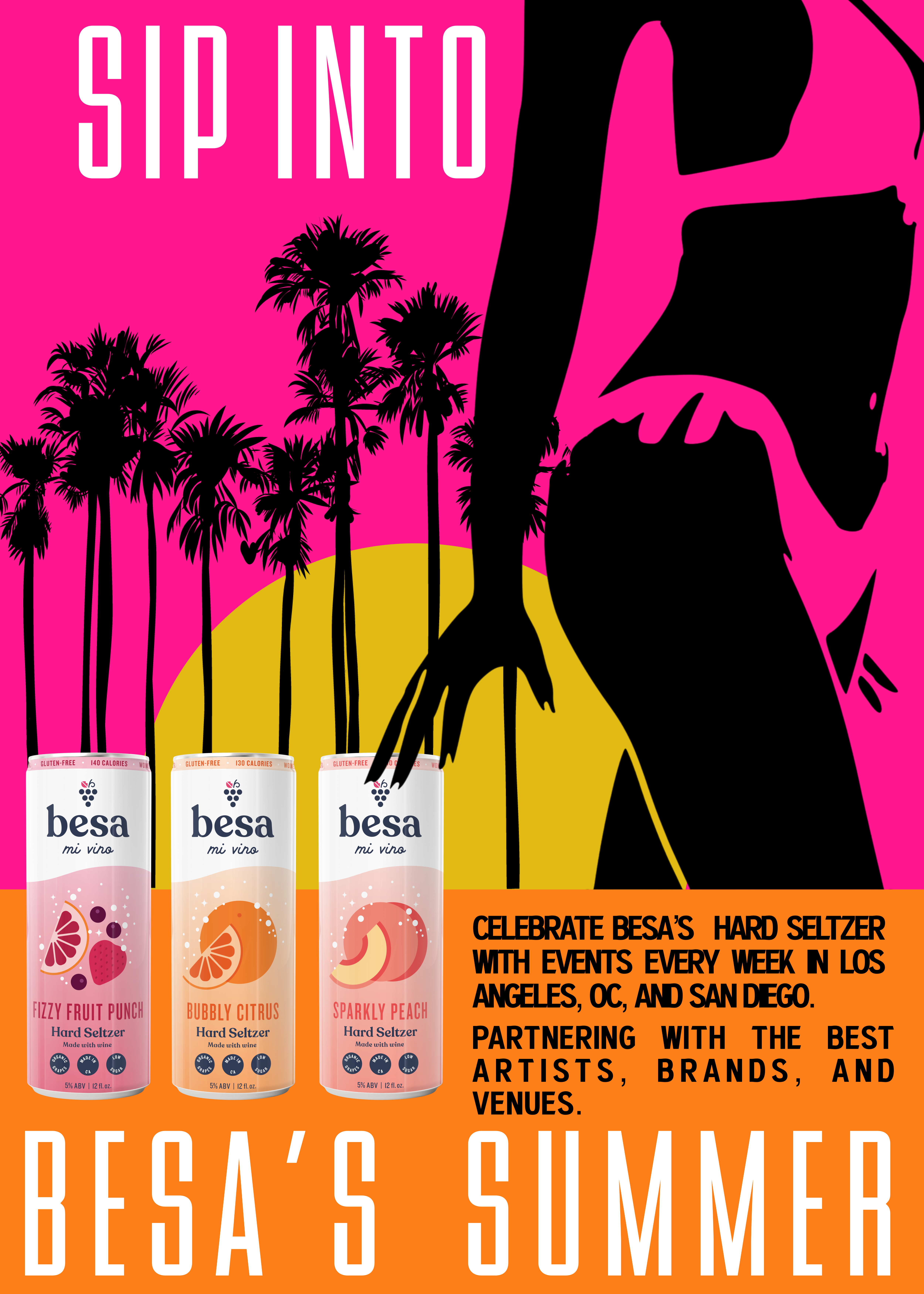 Immerse yourself in the chic budding wine brand; Besa. The designs exude a cheeky sophistication. I was tasked with creating promotional materials for the release of their Hard Seltzer and Events in Los Angeles.